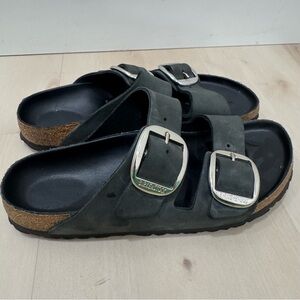 Birkenstock Arizona Big Buckle Slide Sandal Black Oiled Leather Women 40 US9-9.5