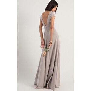 Jenny Yoo Collection Cara Cap Sleeve Plunging Bridesmaid Gown Maxi Size 12