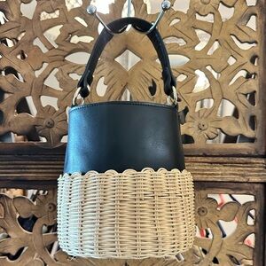 ALDO Aceille Straw Black Vegan Leather Honeybee Bucket Bag Purse.