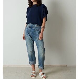 R13 Crossover straight leg Jean in Jasper blue! Excellent condition, all distressed details are part of the design! Can be worn cuffed or uncuffed! Current style!!
