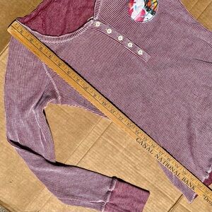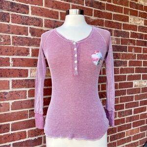 Scanty Brand Women's Top Y2K Henley Scoop Neck Long Sleeve Shirt Small Embroidery