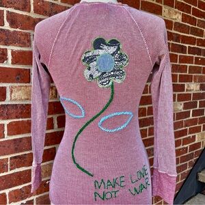 Large embroidered flower and "Make Love, Not War" on back