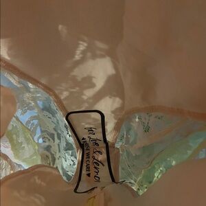 Charming chemise with pastel floral lace. Features delicate straps and a flowing silhouette. Ideal for intimate settings.