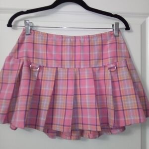Y2K School Girl Style Pink Plaid Mini Skirt Size 2 By Sweet Society