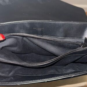 Chic black chevron design. Iconic YSL logo. Perfect for any occasion.