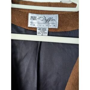 This Vintage Paul Et Duffier Long Wool Coat is a stylish and classic addition to any woman's wardrobe. Made from high-quality wool with a nylon lining, this coat is perfect for the colder seasons of winter, fall, and spring. The double-breasted button closure and trench coat style add a touch of sophistication to any outfit, making it suitable for formal events or business meetings. With its long length, collared neckline, and pockets, this coat is both functional and fashionable, ideal for travel or parties. Made in the USA by the renowned brand Paul Et Duffier, this coat is a timeless piece that exudes quality and timeless style. Pit to pit 24" Length 50"