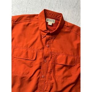 Duluth Trading Co Mens Orange Short Sleeve Button Up Shirt vented fishing