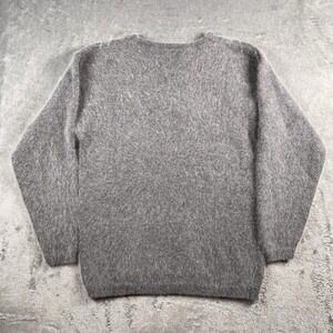 Vtg Rafaella Sweater Womens Size M Grey Argyle Angora Lambswool Shaggy Academia