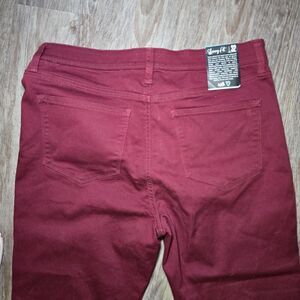 They feature a flattering skinny fit with comfort stretch fabric designed for a slimming look and all-day wear. The rich maroon red color makes them easy to dress up or down.