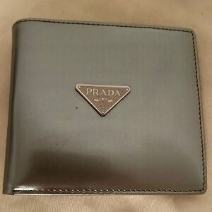 Prada Silver Bi-Fold Wallet Saffiano metallic leather. Hard color to find.