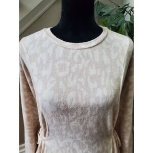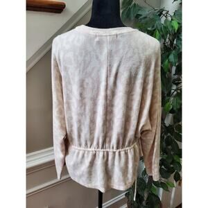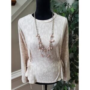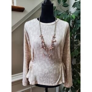 Fab'rik Women's Beige Polyester Round Neck Long Sleeve Casual Top Blouse Size M.