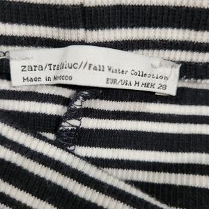 Zara Navy Blue and White Ribbed Stretch Midi Length Fitted Skirt size medium