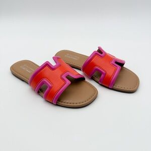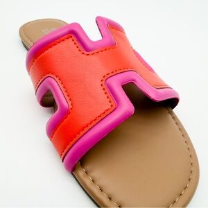 call it spring kamiko sandals, multicolor slide sandals women, red orange pink sandals, colorful summer slides, flat slide sandals, vacation sandals, resort sandals, travel sandals, cruise sandals, beach sandals, spring sandals, summer sandals, casual pool slides