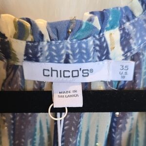 This chic blouse from Chico's features a captivating blue and white graphic design with ruffled accents. The long sleeves add a touch of elegance, making it a versatile piece for both casual and formal occasions. Crafted from a lightweight fabric, it offers a comfortable and stylish fit.