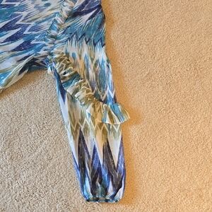 Chico's Blue Ruffled Long Sleeve Blouse