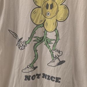 Cream t-shirt featuring a bold flower graphic and 'Not Nice' text. Unique and eye-catching design.100%cotton size medium in good condition
