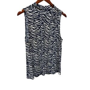 Beacon Zebra Print Sleeveless Mock Neck Top L