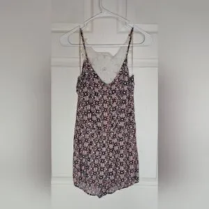 Rue21 Floral Romper Crochet Lace Back Spaghetti Straps - Size Medium
