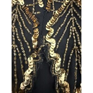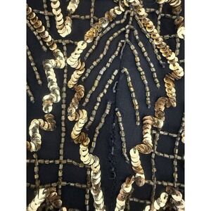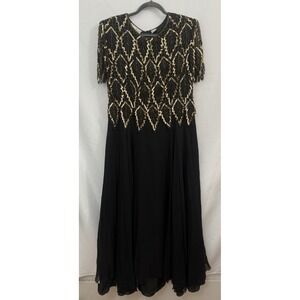 VTG Laurence Kazar 100% Silk Black Gold Beaded Gown Womens Size XL *FLAWS*