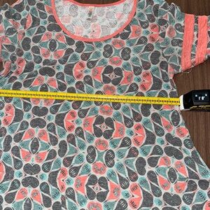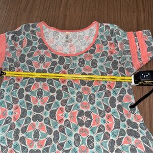Lularoe Womens Small Shirt Tunic Top Varsity Stripes Salmon Teal Gray Comfy