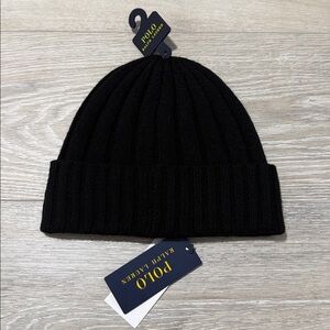 This beanie is made of a 50 % Wool and 50% Nylon blend. It is sold black and is stylish without being too heavy. Has the signature Polo Ralph Lauren multicolored Horsemen.