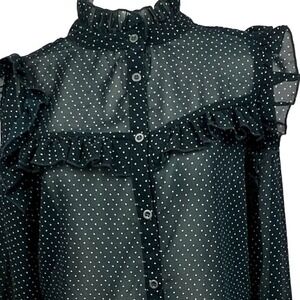 Lascana Green Polka Dot Ruffle High Neck Sheer Button Up Chiffon Blouse Sz 6