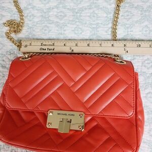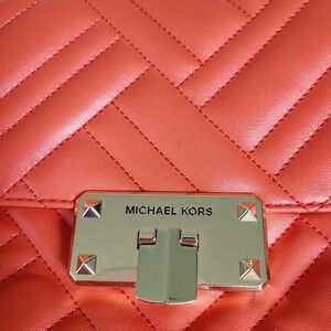 This gorgeous Michael Kors Peyton bag brings that polished, modern vibe with its quilted design, luxe gold-tone chain strap, and vibrant mandarin color. The vegan faux leather feels buttery soft, and the structured flap silhouette keeps the look elevated while still totally wearable for everyday. Inside, you get the classic MK logo lining, pockets for organization, and a comfortable shoulder/crossbody chain that instantly dresses up any outfit. Brand-new with original tag attached — perfect for gifting or adding a bold pop to your wardrobe.