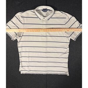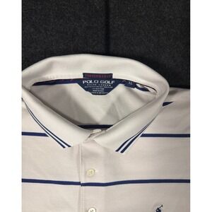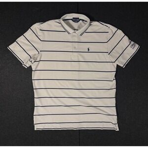 Ralph Lauren Polo Golf Mens XL Beige Navy Stripe Performance Polo Shirt Tip Top