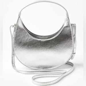 LOFT Metallic Crescent Crossbody Bag | Silver | NWT