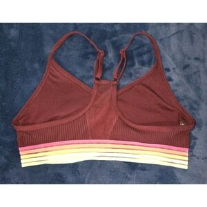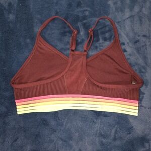 PINK Sport Bra Maroon Mesh Back Rainbow Elastic Band Lightly Lined Size Medium