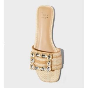 A New Day Women's Rhinestone Embellished Slide Sandals - Raffia Tan size 6.5