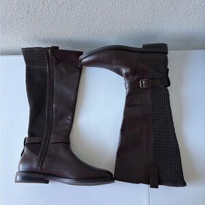 Cole Haan Clive Stretch Brown Knee Boots Size 9.5B Equestrian Horse Buckle Flat