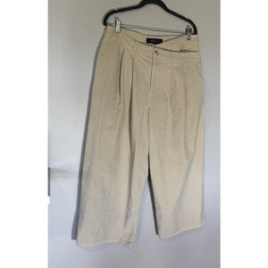 Lioness Women’s Wide Leg Corduroy Pants Beige Size L High-rise Pleated Trousers