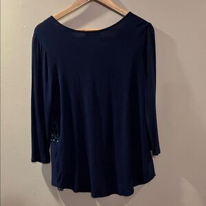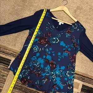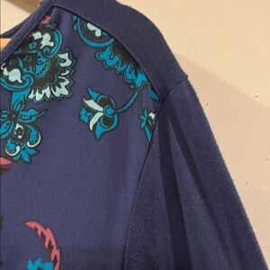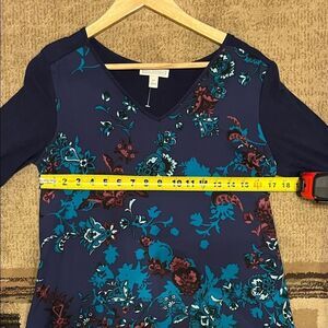 Dana Buchman Navy and Teal Floral Blouse