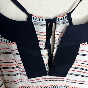 Athleta Coastal Dunes Multicolor Geometric Print Split Neck Tassel Tie Back Top