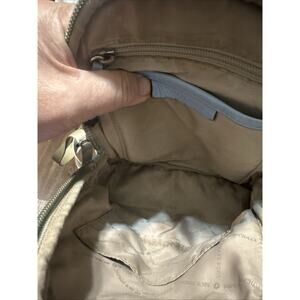 NOTE this is in used condition and shows a few areas of heavy use. I’ve shown everything in pictures including worn corners on bottom. All zippers work great. Interior shows a couple of ink marks and staining. Back has an ink mark.