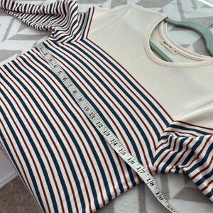 Let us get technical on you for one second: we engineered the stripe on this swingy dress, which means we told them exactly where to start the stripe on each one. It doesn't sound complicated, but it's actually pretty difficult. So. You're welcome. Also featuring side pockets and a sunfaded blue and red stripe.
