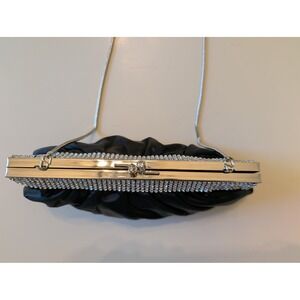 La Sera by Franchi Black Satin Rhinestone Clutch Evening Bag Kiss Lock Party