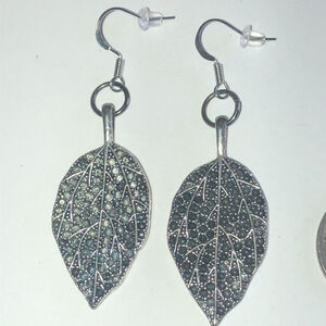 Boho Silver Tone Leaf Double Sided Dangling Pierced Earrings