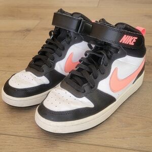 Nike Youth 4.5Y Black White Pink Court Borough Mid 2 High Top Sneakers.