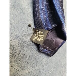 The Vintage Louis Feraud Tie in blue with striped pattern is a designer piece made in Italy and USA. This handwoven silk blend tie features a classic length of 57"-60" and a wide width, perfect for adding a touch of sophistication to any outfit. The abstract design and high-quality craftsmanship make it a standout accessory for those looking for a unique and stylish addition to their wardrobe.