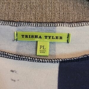 Trisha Tyler Abstract Blue White Art to Wear Casual Boho Top Blouse Petite Large