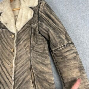 Winlit Womens Shearling Lined Genuine Leather Jacket Brown Zebra Print