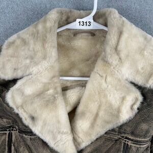 Shearling lined genuine leather jacket in a striking brown zebra print. This outerwear piece offers a luxurious feel with its plush lining and durable leather shell. Expertly crafted for warmth and style.