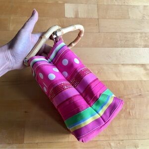 Mercer & Madison Bamboo Handle Mini Bag, Stripes, Polka Dots, Neon Pink, Green