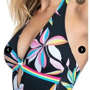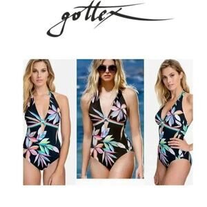 Gottex Women’s tutti frutti heyhole Halter V-Neck One Piece Swimsuit size 10