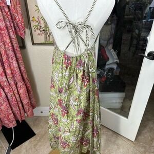 Kaantha Karma NWOT Size Sm- Med adjustable Blockprint Floral Green Midi Dress