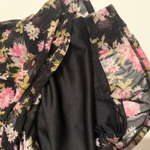 Vintage 90s Y2K Floral Mesh Dress Black Sz Small Ribbon Lace Rose