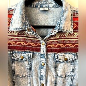 Free 2bu Western Chambray shirt snap buttons Size 14 (Girl)