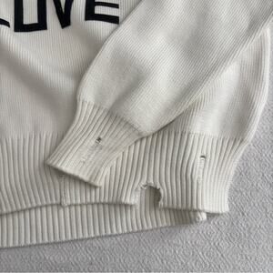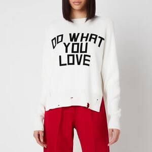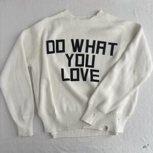 Keywords & Style Tags: Golden Goose sweater, Do What You Love, Delilah knit, distressed sweater, ivory knitwear, slogan sweater, edgy fashion, designer knit, casual chic, street style, luxe details, women’s size S, like new.